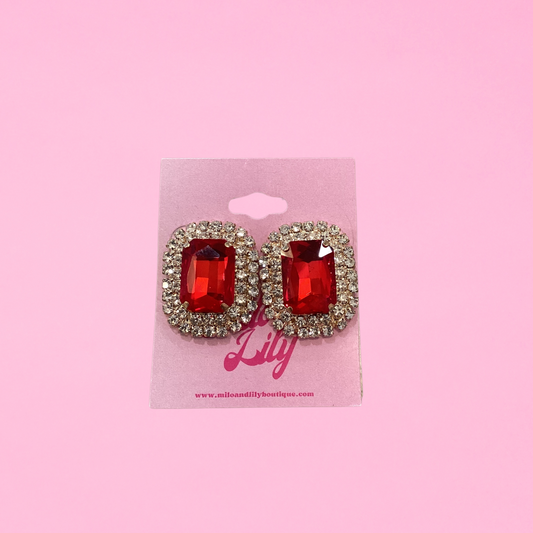Make a Statement Large Rhinestone Stud Earrings - Ruby Red