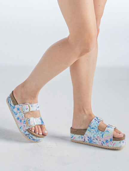 Watercolor Platform Double Buckle Sandals