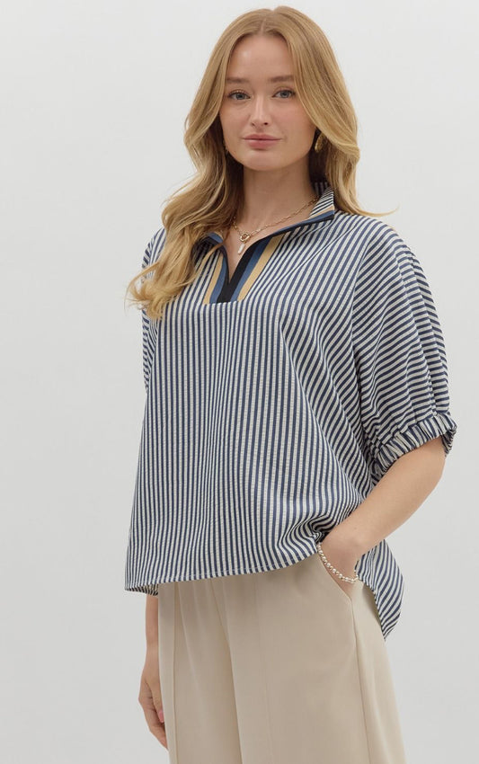 The Penelope Navy Stripe Popover Top