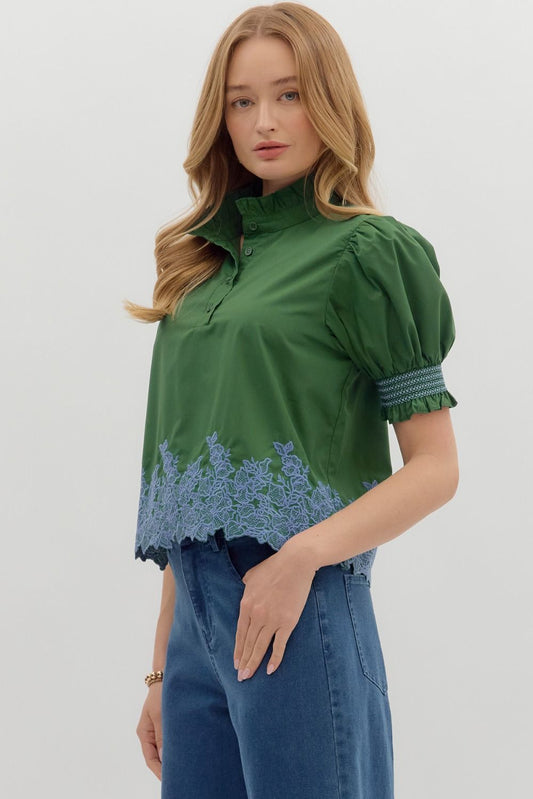 The Fuchsia Flora Embroidered Puff Sleeve Top